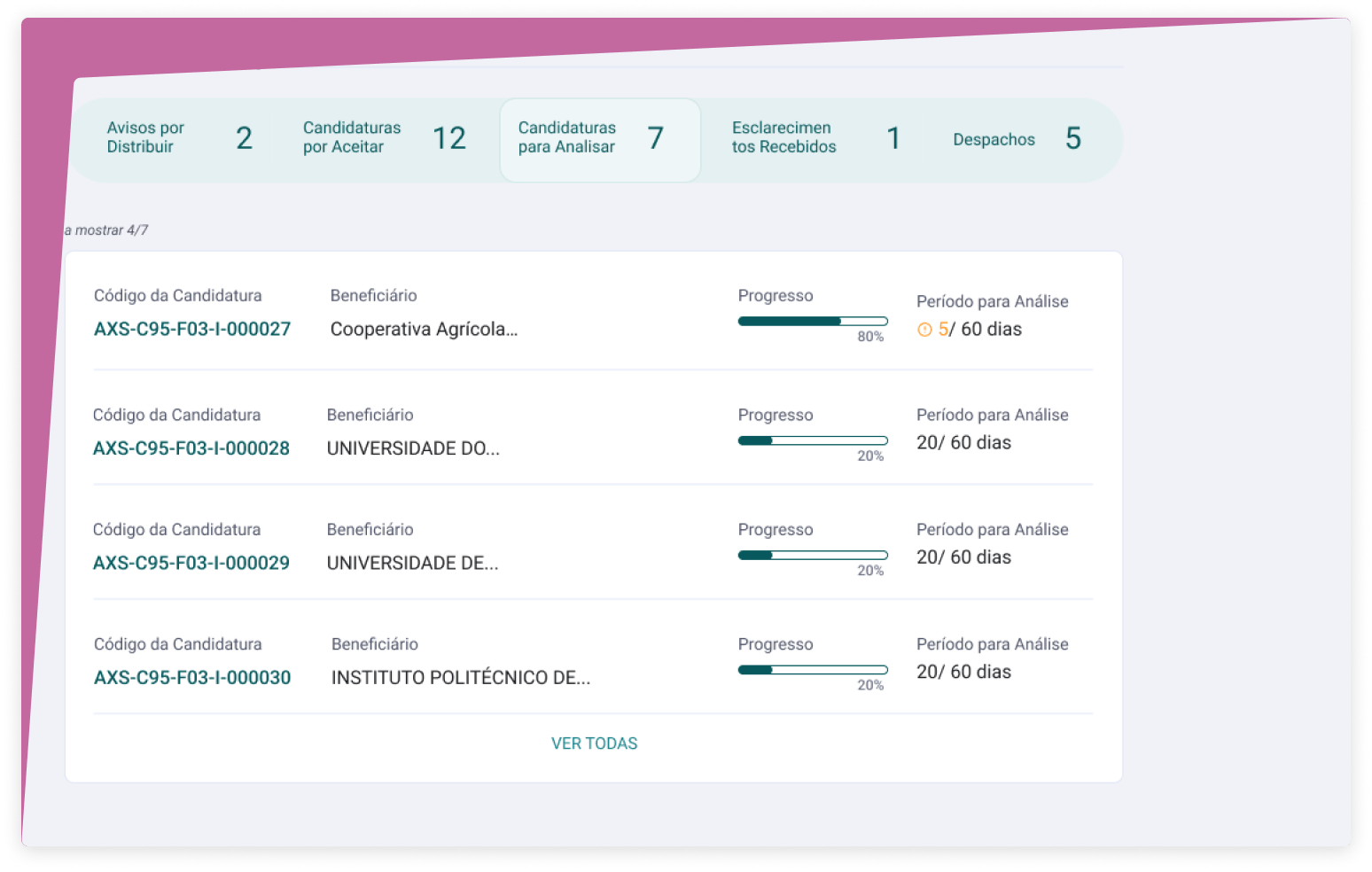 - Formulários de candidatura parametrizáveis;